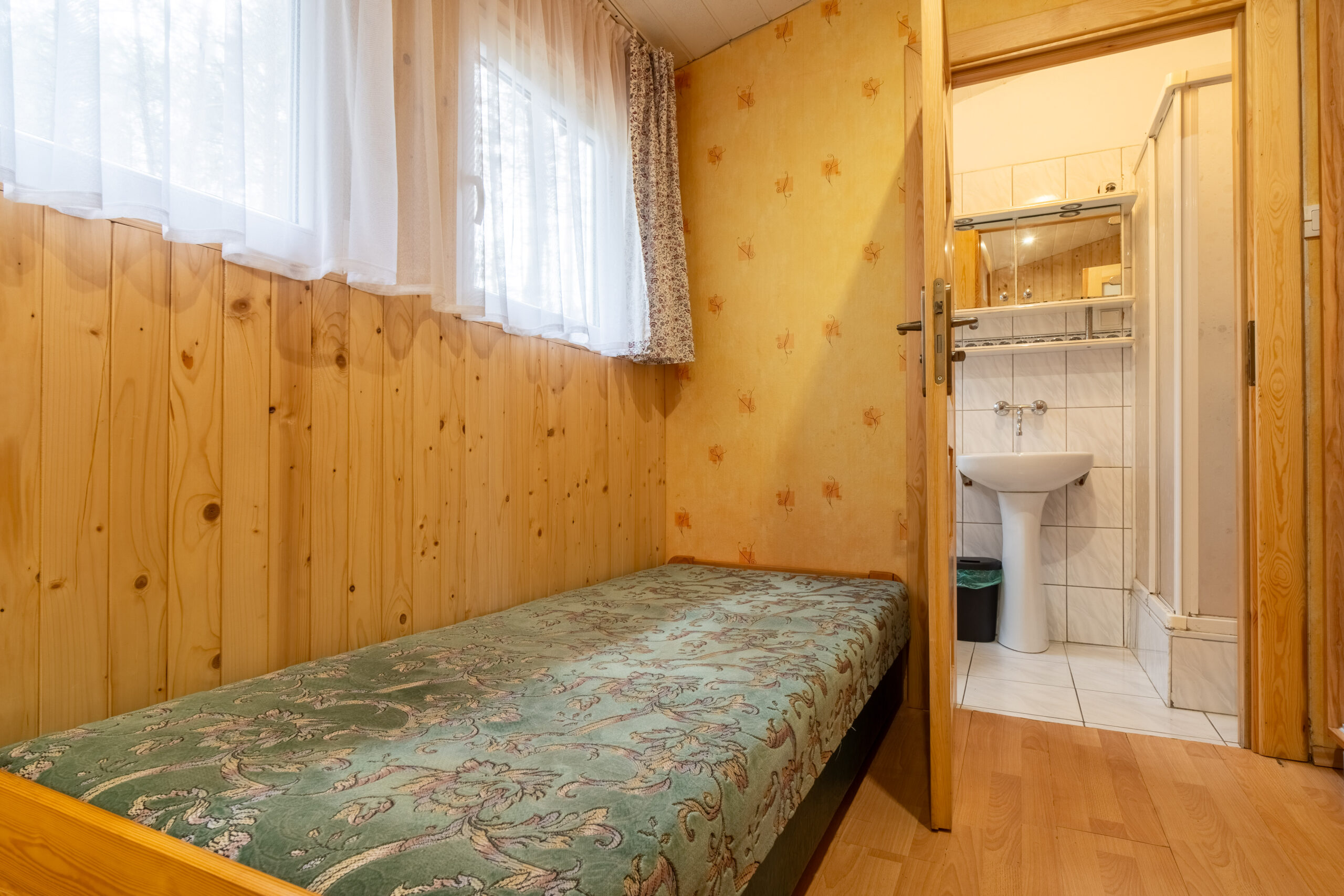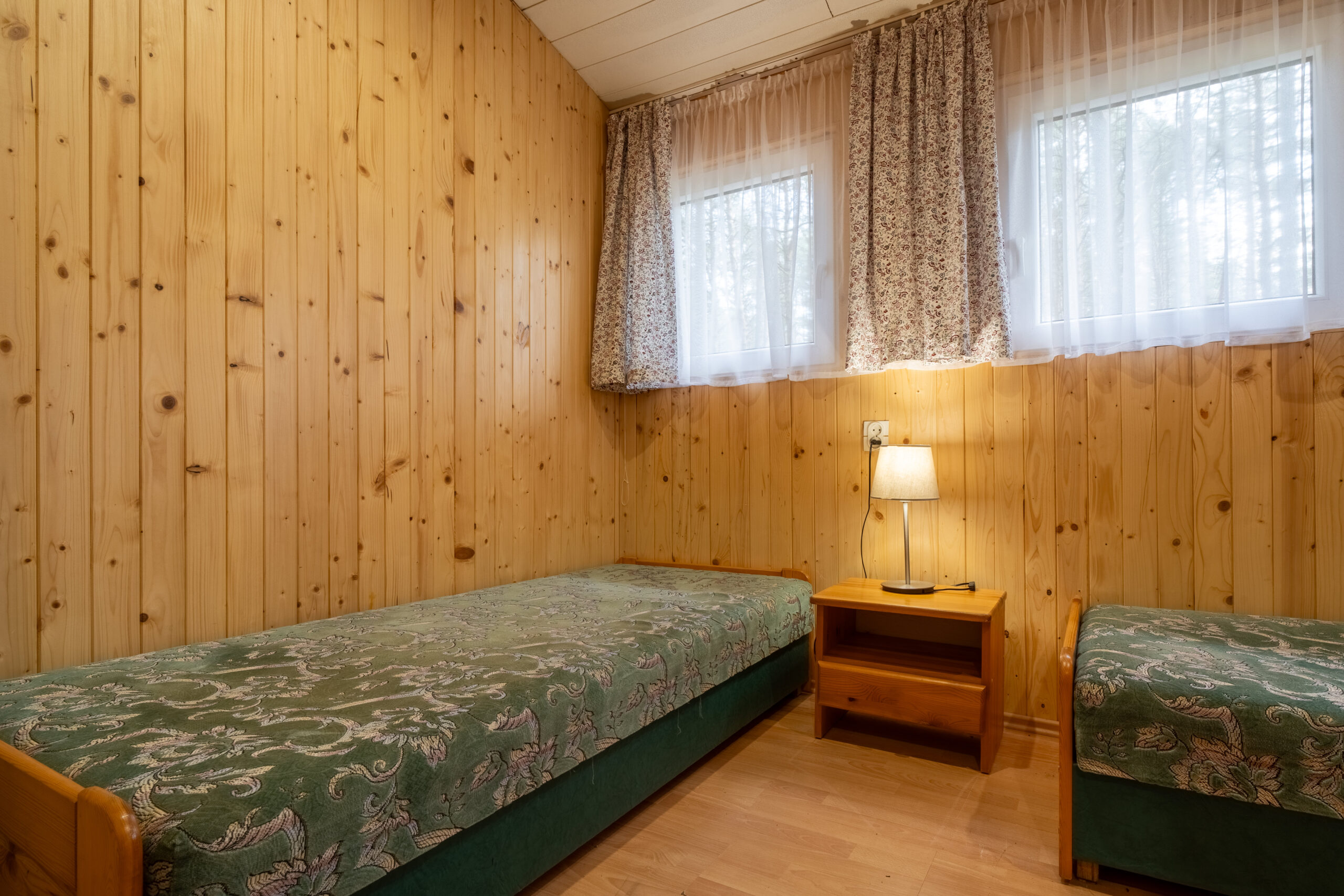 Domek 1-pokojowy, typu „bliźniak A”, to idealne miejsce dla pary lub dwóch osób podróżujących razem. Znajduje się w nim wygodny pokój o powierzchni 23 metrów kwadratowych, który oferuje przytulną przestrzeń do wypoczynku i relaksu. Wewnątrz znajdują się dwa wygodne łóżka, zapewniające komfortowy sen dla obu Gości.